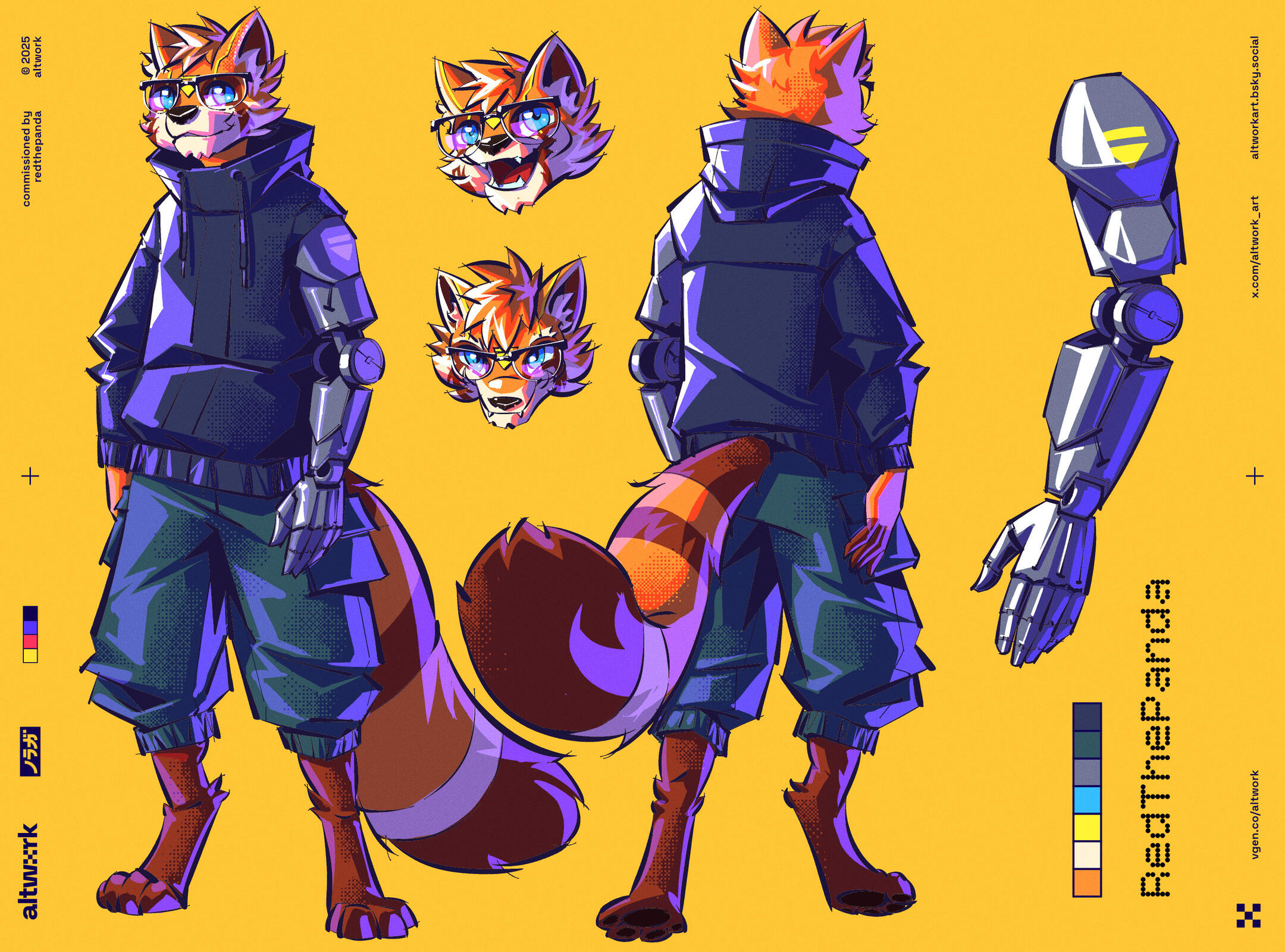 "Viking cyberpunk red panda with chaotic scoundrel vibes. Basically, imagine Rocket Raccoon as a red panda in the world of Horizon: Zero Dawn."